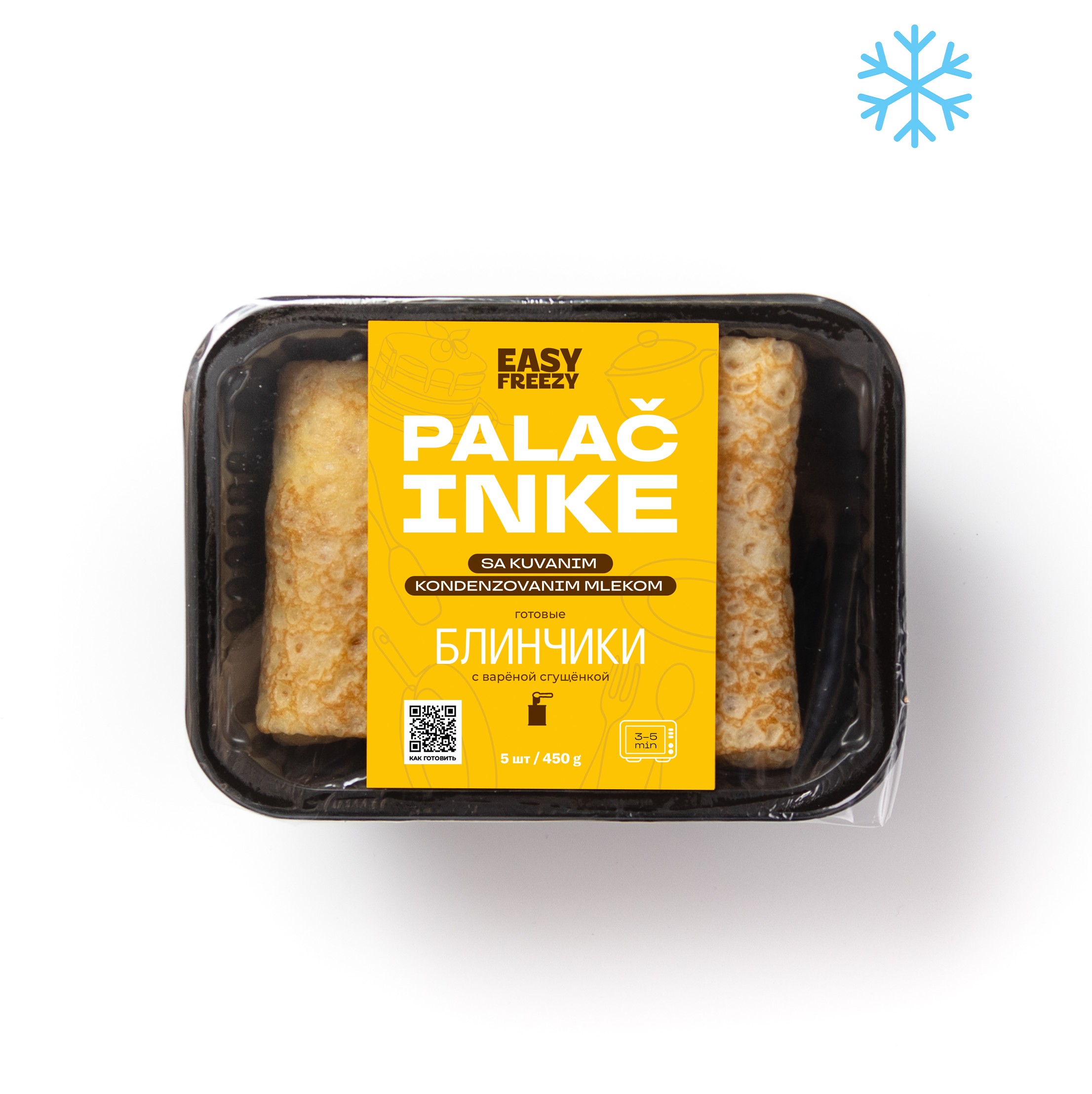 Блинчики с вареной сгущенкой, 450 г (замороженные, готовые) 5 шт