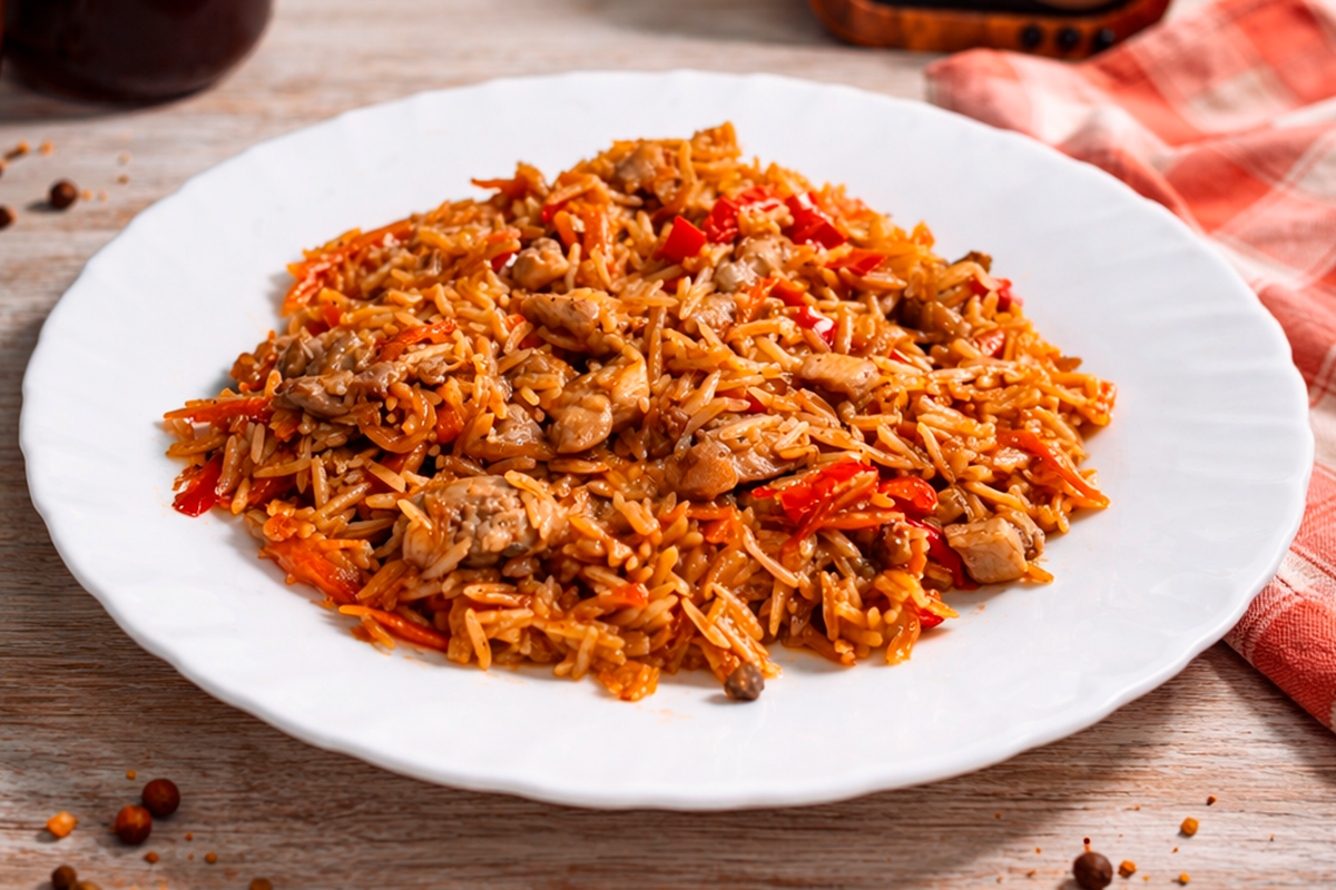Сочное куриное бедро и ароматный рис с восточными нотами. Лёгкая сладость и пряность делают блюдо ярким и запоминающимся.