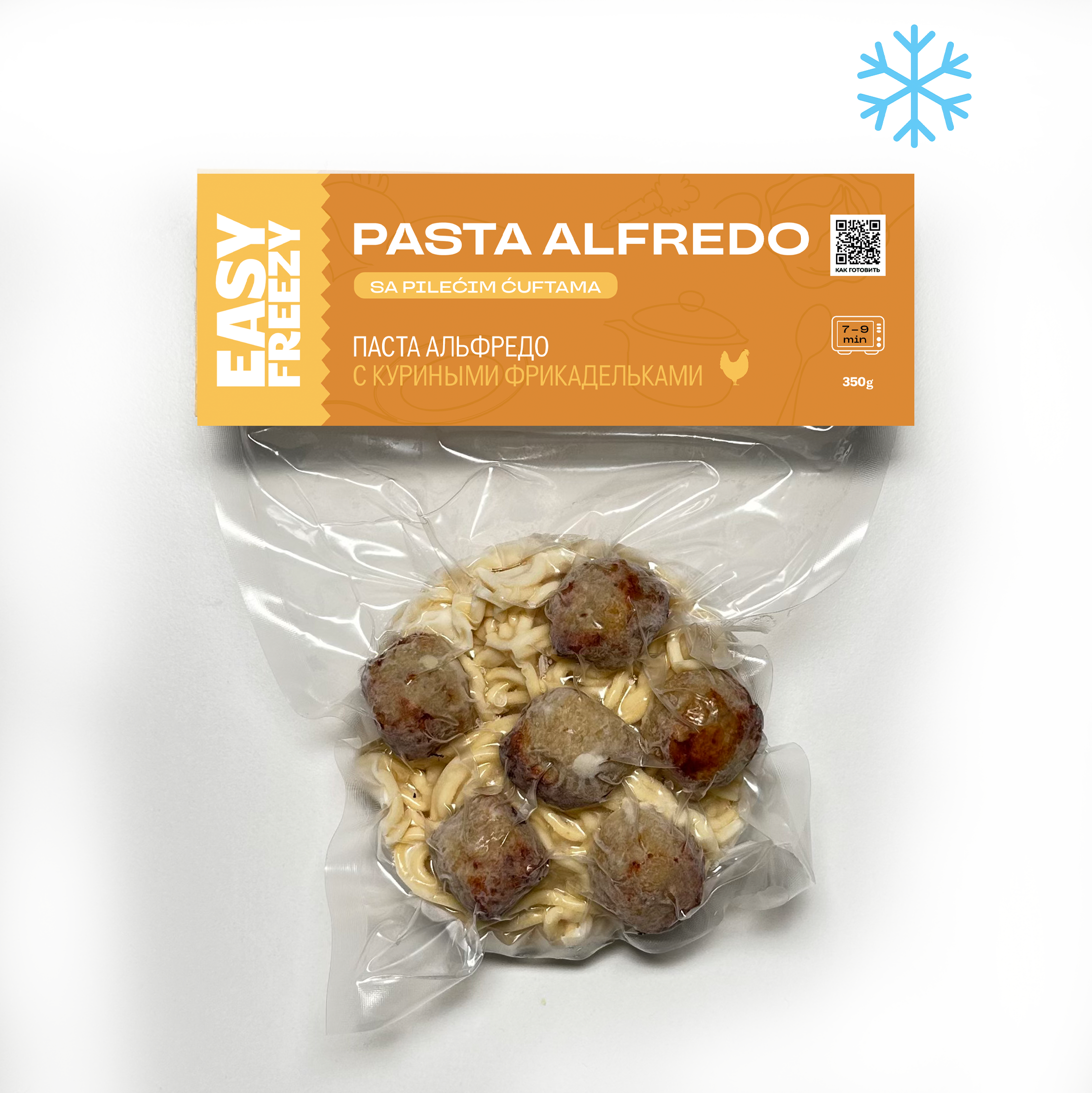 Паста Альфредо с куриными фрикадельками, готовое замороженное блюдо.