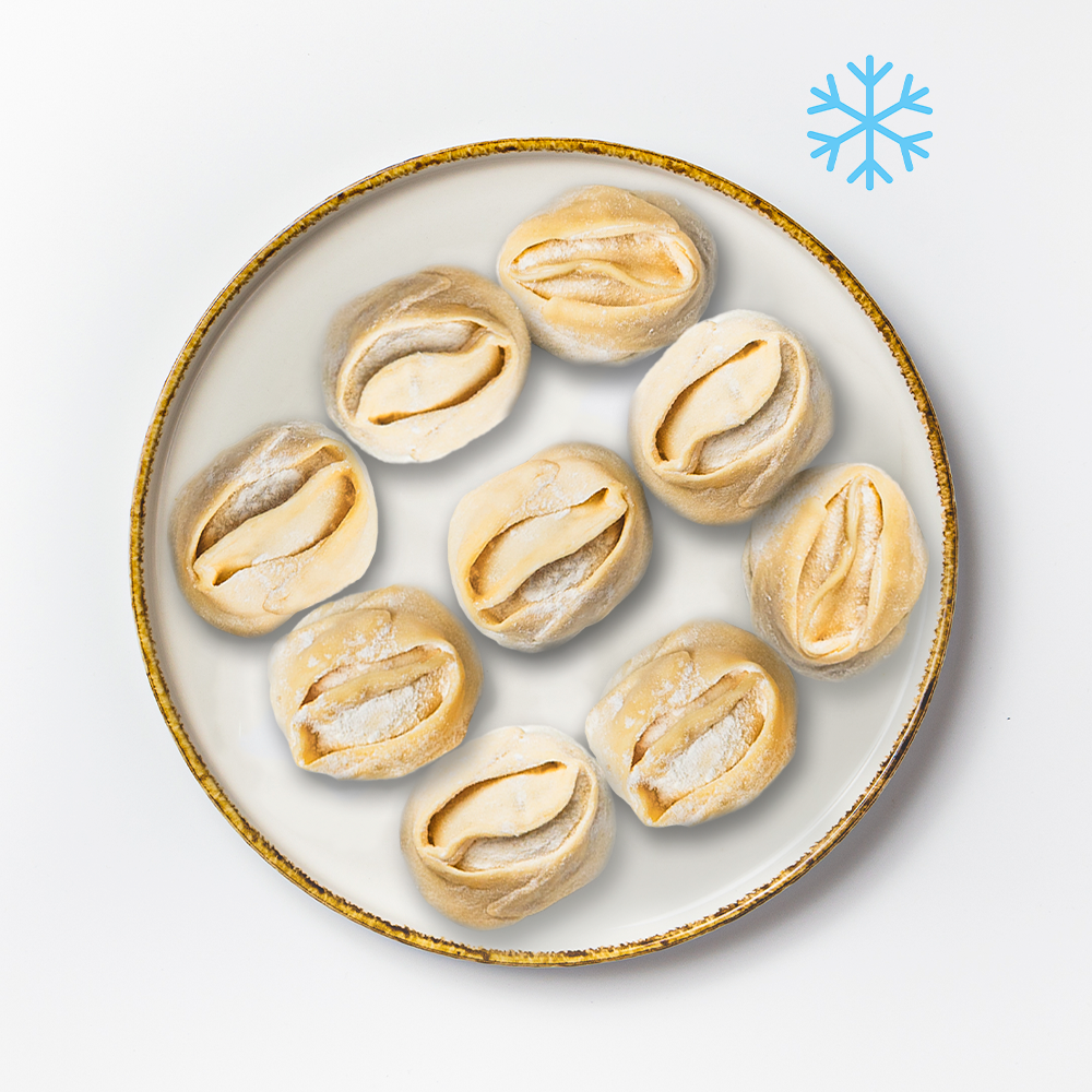 Сочетание баранины и говядины в сочной начинке, завернутое вручную в тонкое тесто. Плотное и ароматное блюдо, подходящее для полноценного обеда. Подходят для приготовления на пару или в мантоварке.