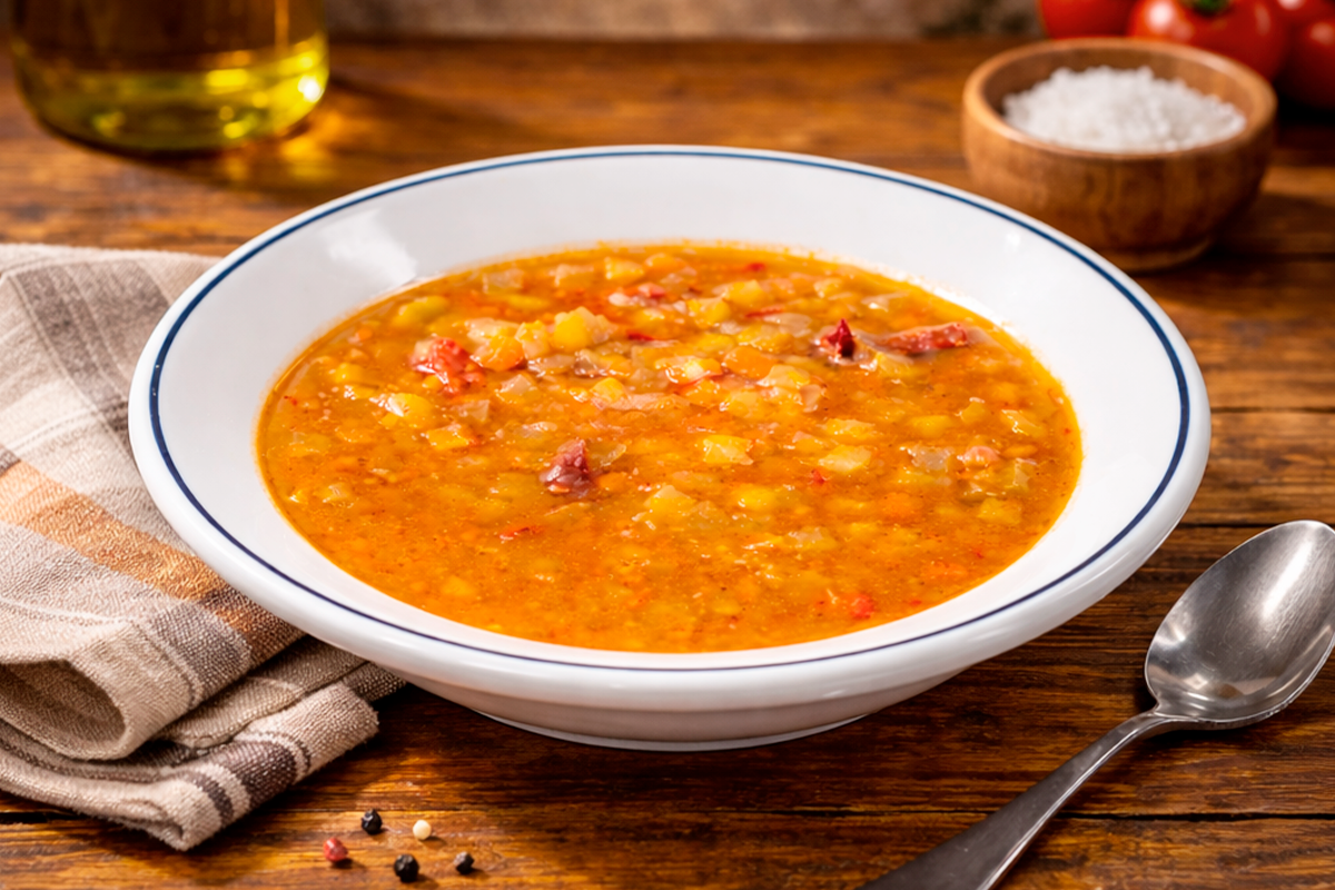 овощной бульон (вода, корень сельдерея, стебель сельдерея, лук, перец болгарский, морковь, соль, соевый соус, сахар), томаты, кольраби, картофель, перец болгарский, корень сельдерея, морковь, фасоль, масло подсолнечное.