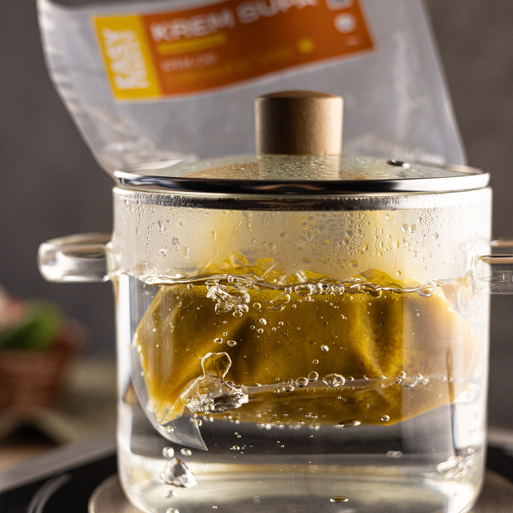 Подготовить суп к подаче просто: можно разогреть в кастрюле без предварительной разморозки или разморозить в СВЧ-печи.